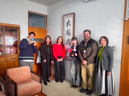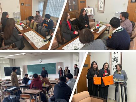 はじめに、本学国際交流センター教職員と昨夏に弘光科技大学へ短期留学した参加した学生が来訪されたお二人をお迎えしました。近況報告に加え、プログラム参加後の学生の成長や、今後の交流の展望について活発な情報交換が行われました。