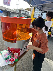 お祭りの定番わたあめは、子供たちから大人気でお祭りが終わるまで稼働し続けていました。ポップコーンはバター醬油と塩バターの2種類を用意し、どちらも大好評でした。また、ヨーヨー釣りでは、釣るのに四苦八している子や一気に2つ釣りあげる子など試行錯誤しながら楽しんでいました。