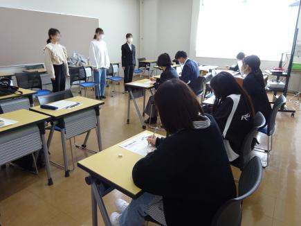 現在、4年生は、会社説明会参加や履歴書・エントリーシート提出等、就職活動真っただ中です。そこで、進路就職課では、採用面接対策として、グループでの模擬面接講座を実施しています。