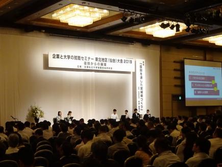 1日には、「復興を通じた宮城県づくり」と題した村井嘉浩知事の講演に続き、大学4年生と企業の採用担当者によるパネルディスカッションが行われました。