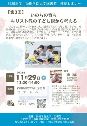 【図書館】連続セミナー 第3回 いのちの育ち 「-キリスト教の子ども観から考える-」開催のご案内
