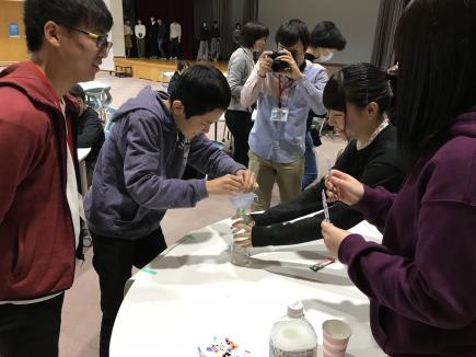 レクリエーションで使用した教材は、有志の学生が制作しました。当日、実際に生徒が楽しく遊ぶ姿を見て、達成感を味わうことができました。