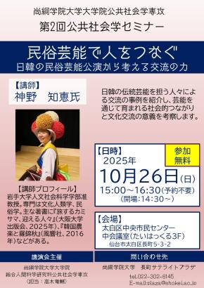 【公共社会学専攻】神野知恵さん講演会 「民俗芸能で人をつなぐ――日韓の民俗芸能公演から考える交流の力」