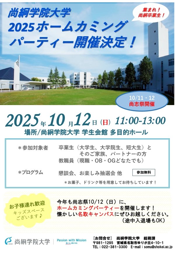 その願いを込め、本年度もホームカミングパーティーを開催いたします。