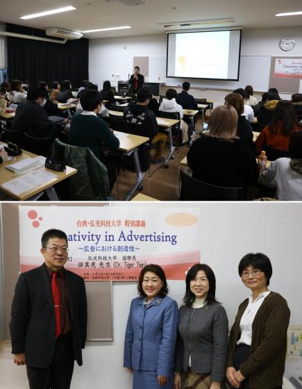 12月12日(木)、本学の協定校である台湾 弘光科技大学より国際長 田其虎博士、国際溝通英語学科長 鄭景媚博士が来校され、特別講義を行いました。