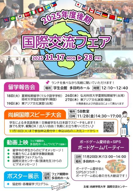 【国際交流】 2025年度後期国際交流フェア開催します✈
