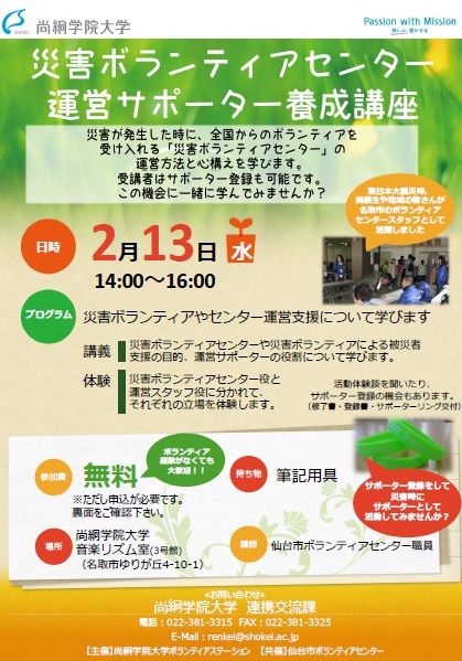 ■主催:尚絅学院大学ボランティアステーション/共催:仙台市ボランティアセンター