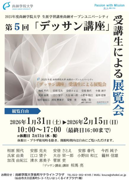 2025年度 尚絅オープンユニバーシティ 第5回「デッサン講座(ステップアップ編)」受講生13名による絵画展覧会を開催いたします。