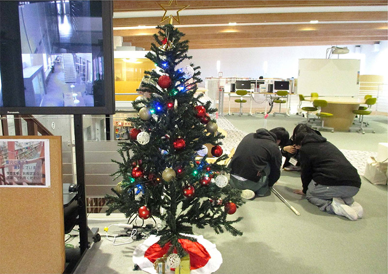 【図書館フェスタ】企画:「クイズラリー」「しおり作り」、クリスマスツリー設営の様子