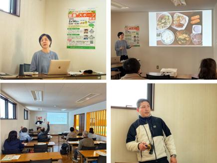 第1部「栄養について知ろう!」では、健康栄養部門の山城秋美准教授が担当し、日々の食事に簡単に取り入れることができるヒントにあふれた講座となりました。食事における栄養バランスの重要性や足りない栄養を手軽に補う方法、運動前後の食事で効果的な栄養摂取の方法などについて、参加者は熱心に耳を傾けていました。